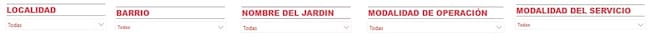Sin embargo, también puede filtrar por localidad, barrio, nombre de jardín, modalidad de operación y de servicio..
