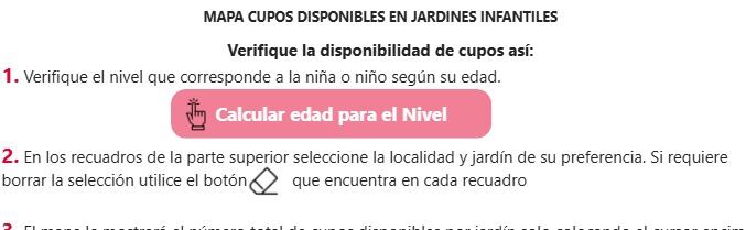 No obstante, antes de llenar el formulario, se recomienda revisar disponibilidad de cupos en los jardines de interés, ya sea por cercanía a su hogar o al lugar de trabajo.