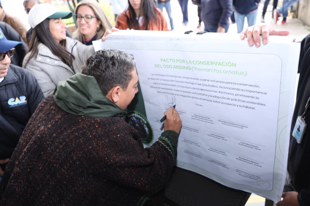 La jornada tuvo como hecho central la firma del Pacto por la Protección del Oso Andino, mediante el cual autoridades ambientales, gobiernos locales y actores del territorio se comprometieron a aunar esfuerzos para la conservación, protección y manejo del corredor biológico del oso andino, promoviendo la educación ambiental, la participación comunitaria y prácticas sostenibles que mitiguen las amenazas sobre esta especie y su hábitat.