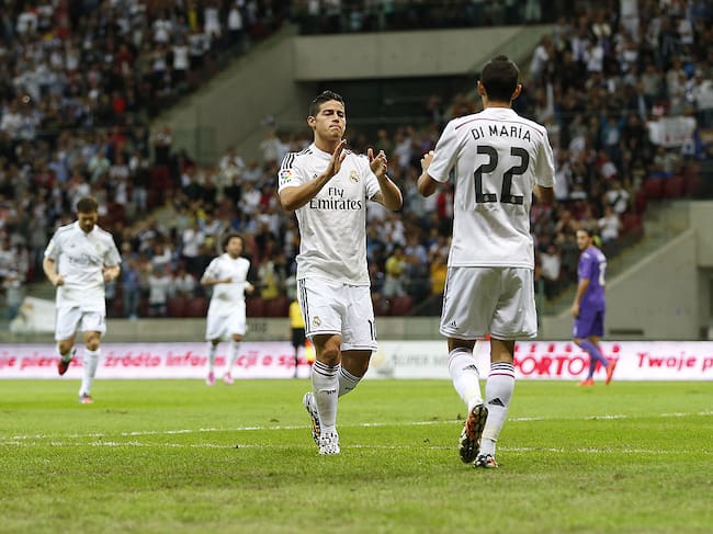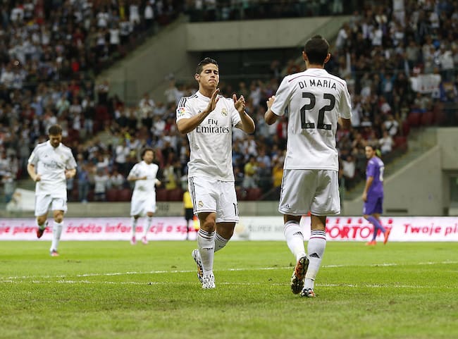 James Rodríguez y Ángel Di María en un partido amistoso del Real Madrid frente a Fiorentina / Getty Images / Helios de la Rubia