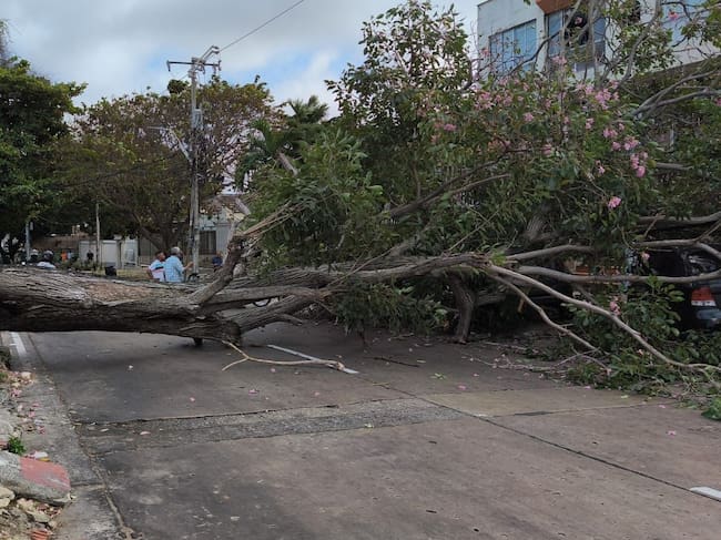 Fuertes vientos causan caídas de árboles en el norte de Barranquilla: hubo carros afectados