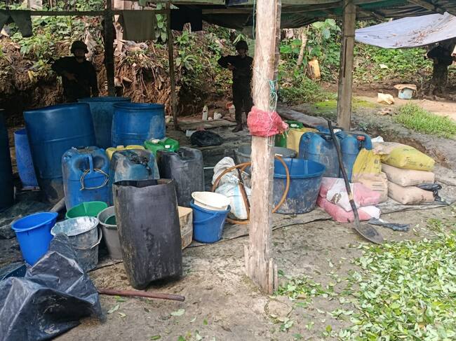 Durante la operación también se incautaron 175 kilos de cemento, 130 kilos de cal, 120 kilos de urea, dos prensas artesanales y 21 canecas plásticas, elementos que hacían parte del proceso de producción del alcaloide.