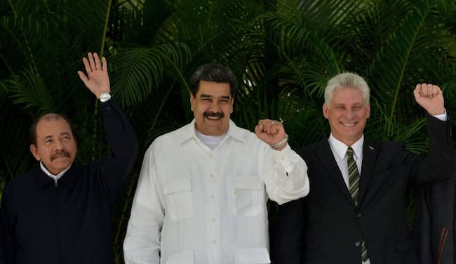 Los presidentes Daniel Ortega (Nicaragua), Nicolás Maduro (Venezuela) y Miguel Díaz Canel (Cuba). Foto: Getty