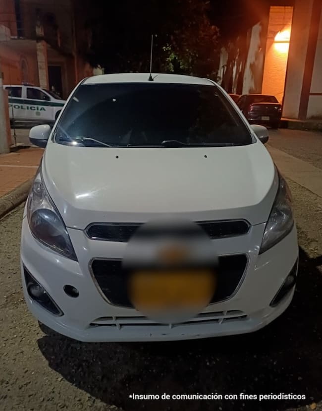 Vehículo en el que se movilizaban los presuntos responsables, el cual presentaba placas adulteradas, incautado por la Policía Nacional. Foto: Fiscalía General de la Nación.