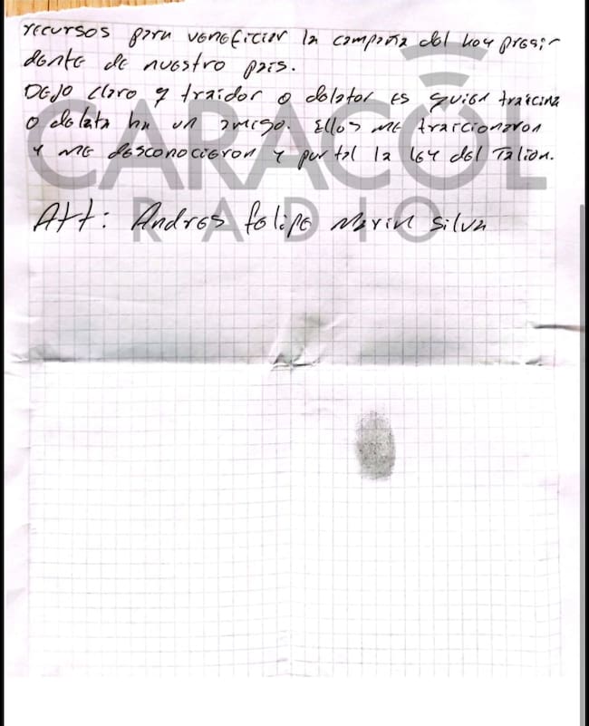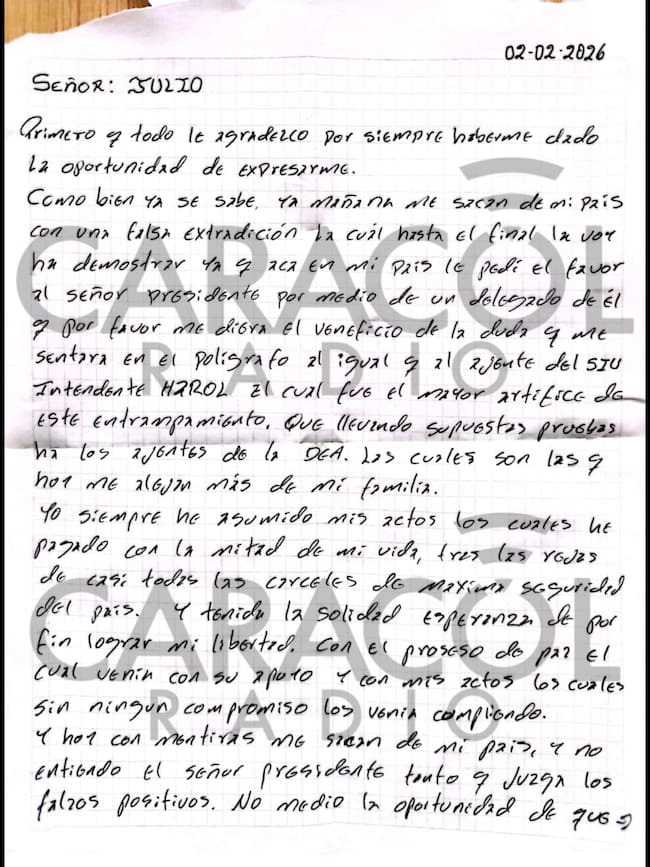 Andrés Felipe Marín Silva, alias ‘Pipe Tuluá’, dejó una carta en poder de 6AM W antes de ser extraditado.