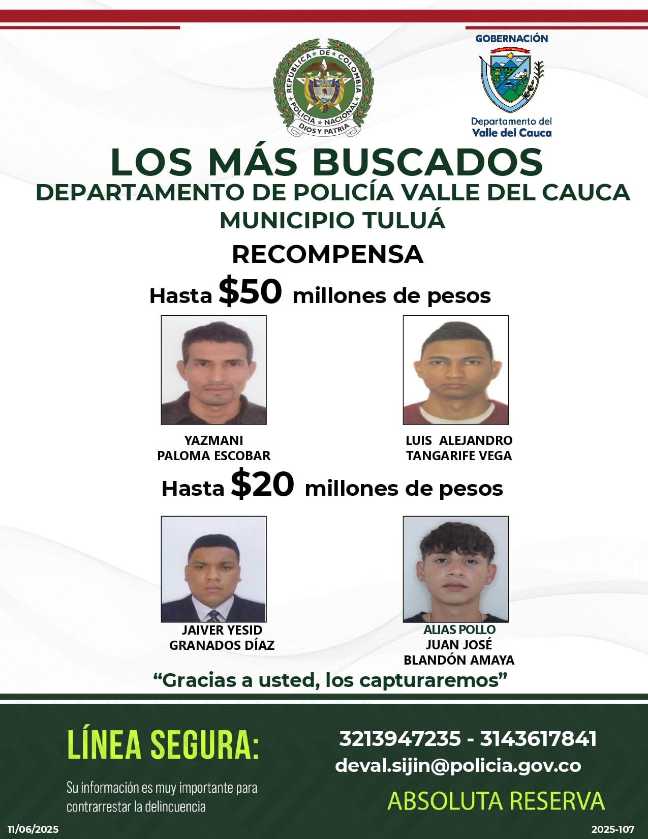 En el reciente cartel de los más buscados de Tuluá, figuran cuatro presuntos integrantes de La Inmaculada: