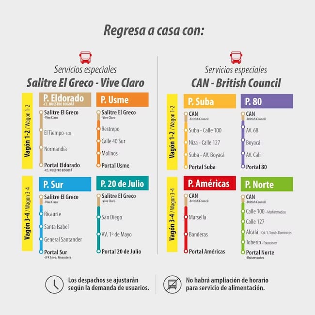 Recientemente, la Alcaldía de Bogotá en conjunto con Transmilenio anunció la implementación de rutas especiales y la extensión en el horario del servicio de transporte público.