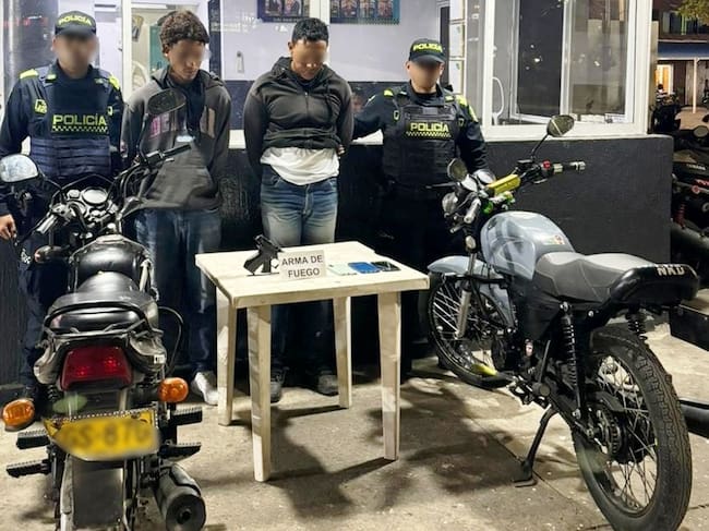 Durante el operativo fueron incautadas dos motocicletas, tres celulares y una pistola con un cargador y tres cartuchos calibre 9 milímetros.