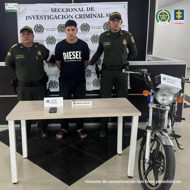 La captura de Martínez Archila fue materializada en zona céntrica de esta ciudad. Durante el procedimiento le fueron incautados un celular y una motocicleta.