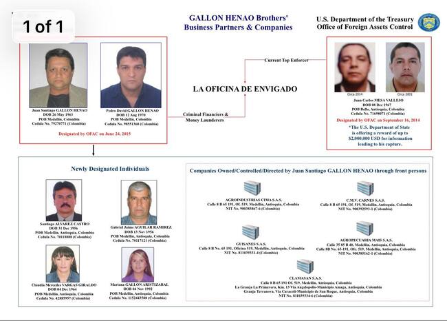En mayo de 2017, la OFAC del Departamento del Tesoro de Estados Unidos incluyó en la Lista Clinton a Santiago Gallón Henao, a su hija Mariana Gallón Aristizabal y a su exesposa Claudia Mercedes Vargas Giraldo. También a Santiago Álvarez Castro, socio de Gallón Henao; a su abogado, Gabriel Jaime Aguilar Ramírez. En la lista también fueron incluidas cinco empresas: Agroindustrias Cima S.A.S., C.M.V. Carnes S.A.S., Guisanes S.A.S., Agropecuaria Mais S.A.S. y Clamasan S.A.S., esta última con seccionales en los municipios de Amagá y San Roque, y beneficiaria de Agro Ingreso Seguro.