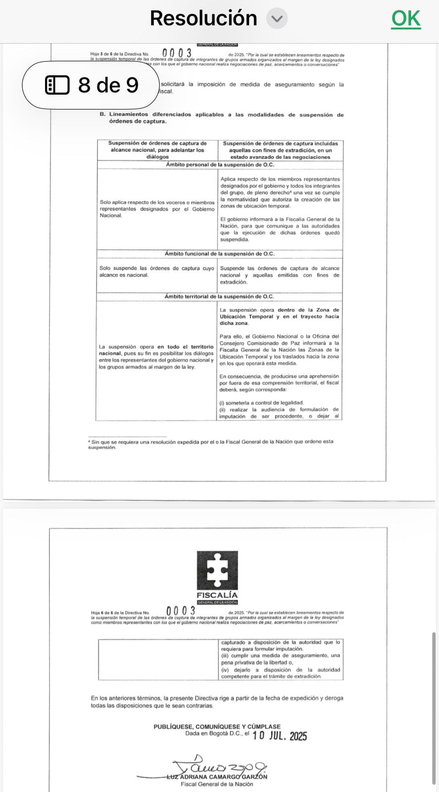 Mediante una resolución de nueve páginas, la jefa del ente acusador en Colombia cuestionó que dentro del grupo que resultaría favorecido con la suspensión de las órdenes de captura se encuentren al menos dos personas que tienen orden de captura vigente con fines de extradición y conceptos favorables por parte de la Corte Suprema de Justicia para que respondan ante la justicia estadounidense por delitos relacionados con narcotráfico.
