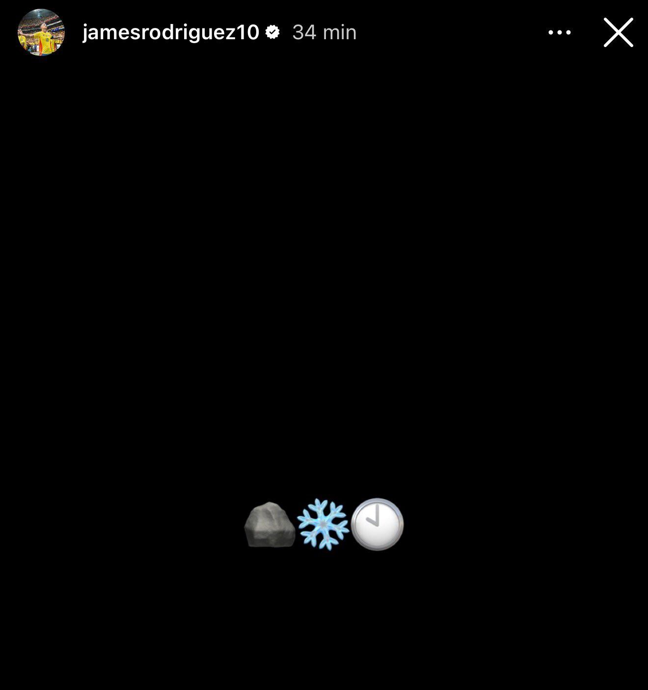 James hizo una parada en Miami por temas familiares, y se supo que el jueves viajó a Minnesota. En horas de la noche, el cucuteño subió una historia a su Instagram en la que puso tres emojis: una piedra, un copo de nieve y un reloj, dejando entrever que el anuncio está por caer.