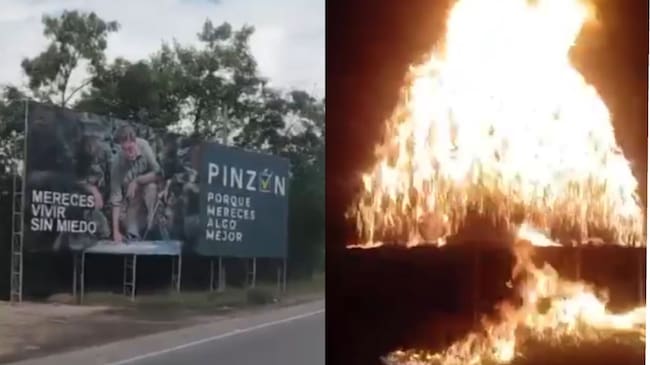 Incendian valla de candidato presidencial en El Zulia, Norte de Santander. / Foto: Cortesía.