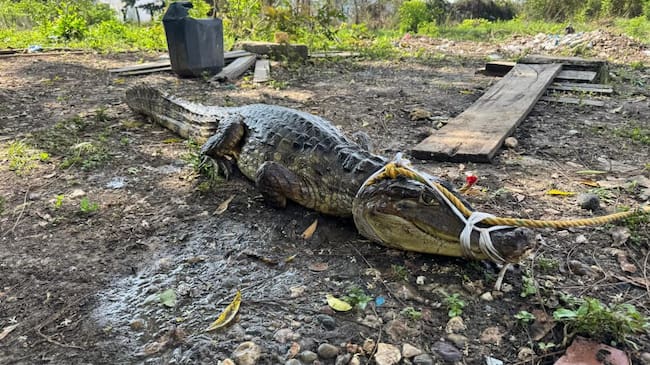 Una babilla se metió a un patio y sembró el susto. El dueño de la vivienda iba a buscar unas herramientas cuando la impresión lo obligó a salir corriendo: entre dos tanques de agua, inmóvil y silenciosa, una babilla de aproximadamente dos metros de longitud se encontraba al interior de su casa, en el barrio Miraflores de Magangué.