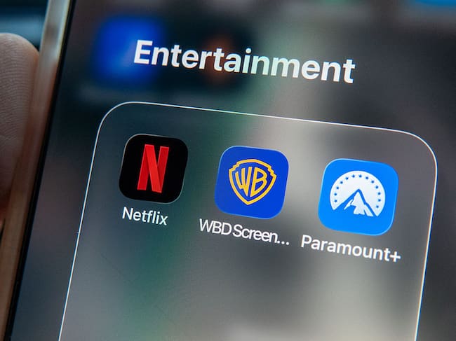 BRISTOL, UNITED KINGDOM - DECEMBER 09: In this photo illustration a man holds a iPhone, that shows Netflix, Warner Bros and Paramount streaming apps on his phone screen on December 9, 2025 in Bristol, England. Yesterday US production company Paramount said that it was now looking to challenge Netflix's takeover of Warner Bros. Discovery (WBD) with a hostile bid of its own. (Photo by Anna Barclay/Getty Images) / Anna Barclay