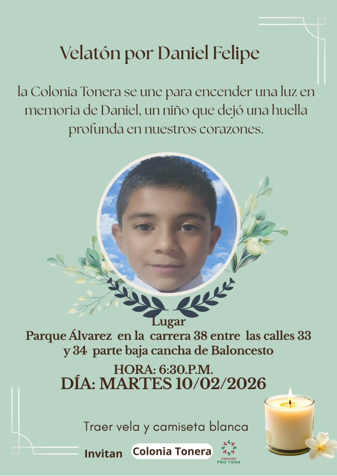 “Velatón por Danielito”: comunidad Tonera convoca un homenaje con velas tras la muerte del menor