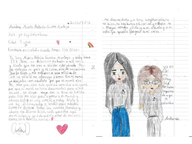 La historia de María Alejandra Montoya y su hija, María Antonia, de 9 años, ha conmocionado a la opinión pública tras su detención en el aeropuerto de Miami y posterior deportación a Colombia. Lo que prometían ser unas vacaciones familiares se convirtió en una pesadilla de casi cuatro meses en un centro de detención de ICE, en Texas, donde la presión sobre la madre para renunciar a sus derechos migratorios se ejerció a través de la vulnerabilidad de su hija.