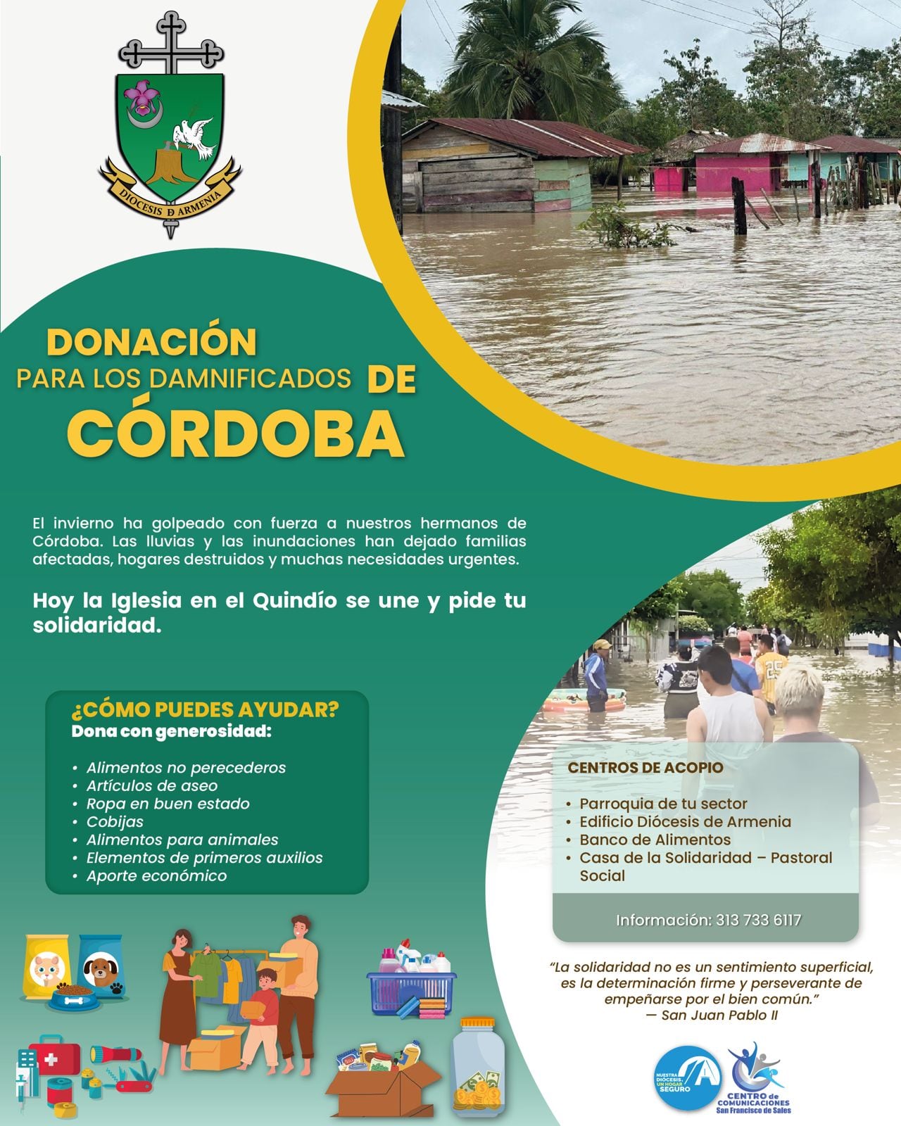 Desde hoy todos los templos católicos de los 12 municipios del Quindío son centro de acopio de ayudas para los damnificados por las inundaciones en el departamento de Córdoba