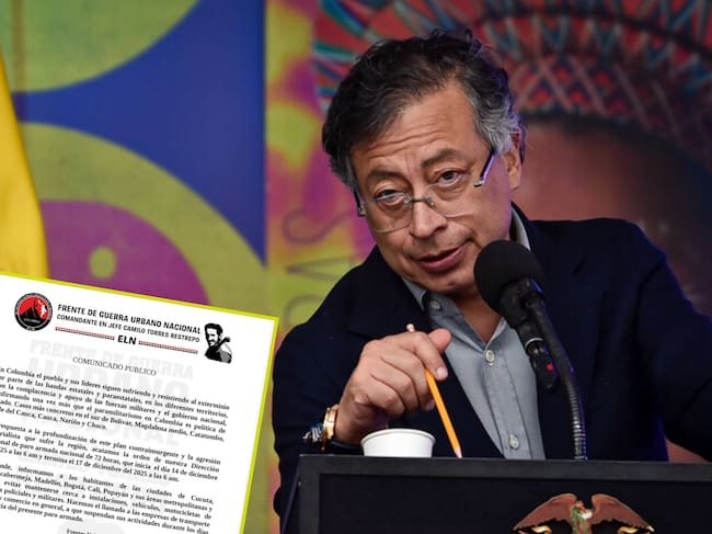 Gustavo Petro y comunicado del ELN. Fotos: (Colprensa - Cristian Bayona) / Redes sociales