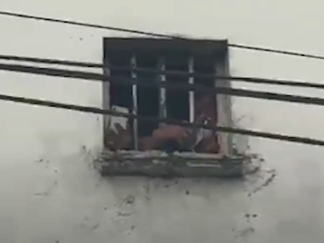 Las personas grabando el desfile desde una venta de la Cárcel Modelo. Foto: tomada de video de redes sociales.