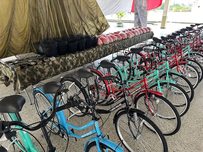 Gracias a la donación del Ejército Nacional y la Fuerza Aeroespacial Colombiana, 27 niños y niñas del corregimiento recibieron estas bicicletas, con sus respectivos kits de seguridad, “un aporte que no solo facilitará su movilidad y sano esparcimiento, sino que también les permitirá transformar su realidad en cada pedaleo”, señala la institución.