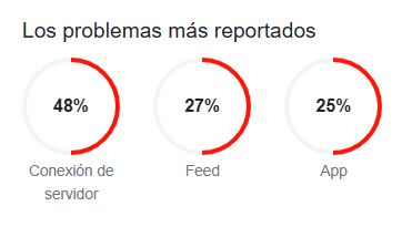 Informaron que entre los problemas reportados los más frecuentes son: conexión de servidor (48%), feed (27%) y app (25%).