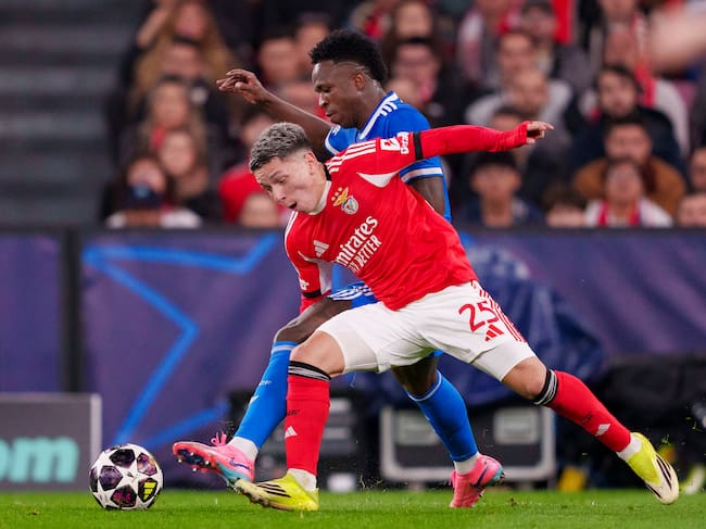 En una disputa, Vinícius Jr. —que ya estaba amonestado— le cometió una fuerte falta a Ríos. Sin embargo, pese a la dureza de la infracción y a que el brasileño ya tenía tarjeta amarilla, el árbitro decidió no mostrarle la segunda amonestación, una determinación que generó reclamos inmediatos por parte de Benfica.