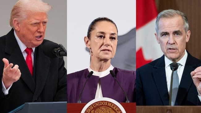El presidente de Estados Unidos, Donald Trump, de México, Claudia Sheinbaum, y el primer ministro de Canadá, Mark Carney. FOTOS: Getty Images