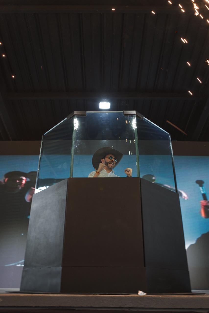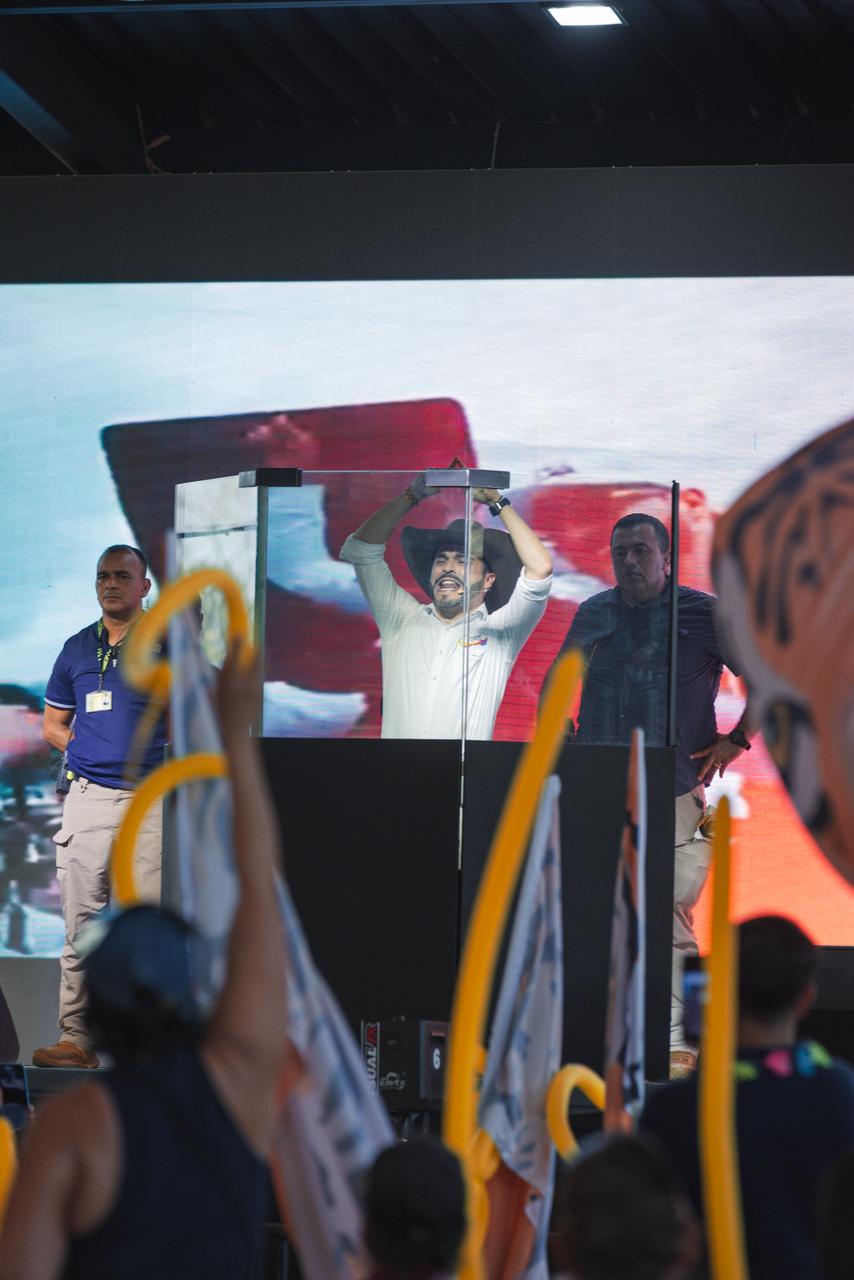 Abelardo de la Espriella realizará sus eventos políticos con un atril cubierto con vidrio blindado. Fotos: suministradas.