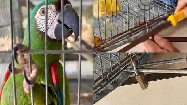 Guacamaya que fue hallada en jaula con candado en Buga ya está en proceso de rehabilitación