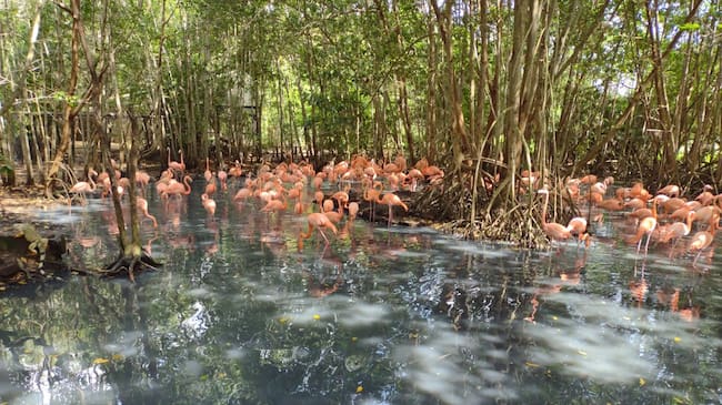 El retorno de los flamencos a este ecosistema ha sido considerado un indicador positivo de la recuperación ambiental del cuerpo de agua, pues estas aves migratorias encuentran allí un hábitat propicio durante su recorrido desde Venezuela, La Guajira y algunas islas del Caribe. Sin embargo, su presencia en entornos urbanos implica riesgos adicionales.