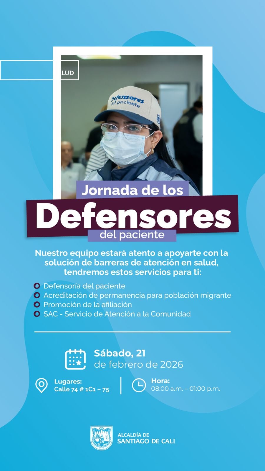 Durante la jornada, la comunidad podrá acceder a orientación de la Defensoría del Paciente de la Secretaría de Salud Pública de Cali.