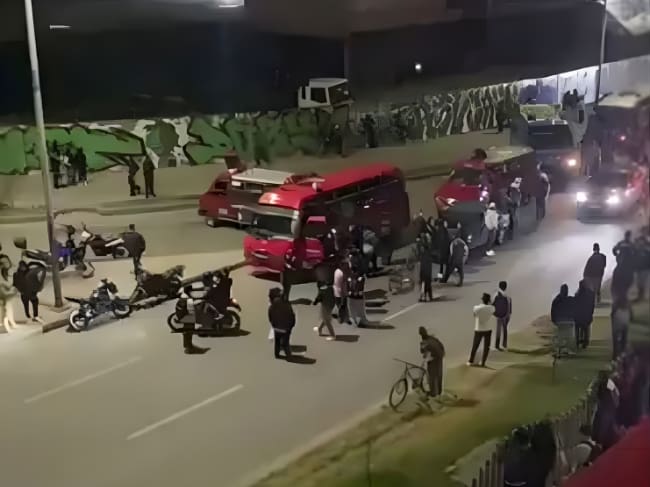 Tercer día de bloqueos en la Autopista Sur en Soacha por parte de conductores de transporte público