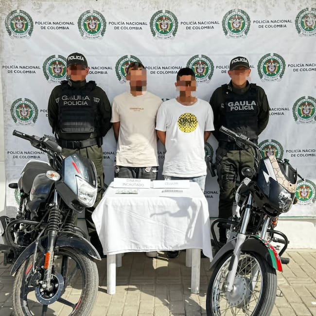 Durante el procedimiento, los uniformados incautaron dos motocicletas, un teléfono celular y dinero en efectivo, elementos que, según la Policía, estarían relacionados con la actividad extorsiva. Los detenidos fueron puestos a disposición de la autoridad judicial competente, que definirá su situación jurídica.