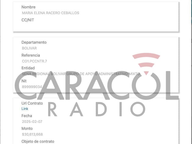 5. La tía del representante a la Cámara, María Helena Racero Ceballos, recibió contrato por más de 30 millones con el Sena Regional de Bolívar.