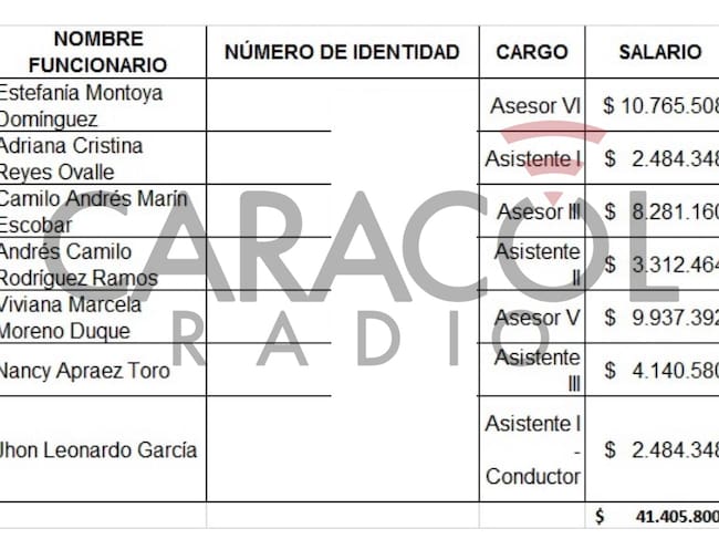 7. Ángela María Araujo, esposa de Walter Fidelio Castilla, primo de David Racero, fue contratada por la Presidencia de la Cámara de Representantes, cuando Racero fue presidente, le pagaron 57 millones de pesos. Cuando terminó la presidencia de Racero fue contratada en el Ministerio de Justicia.