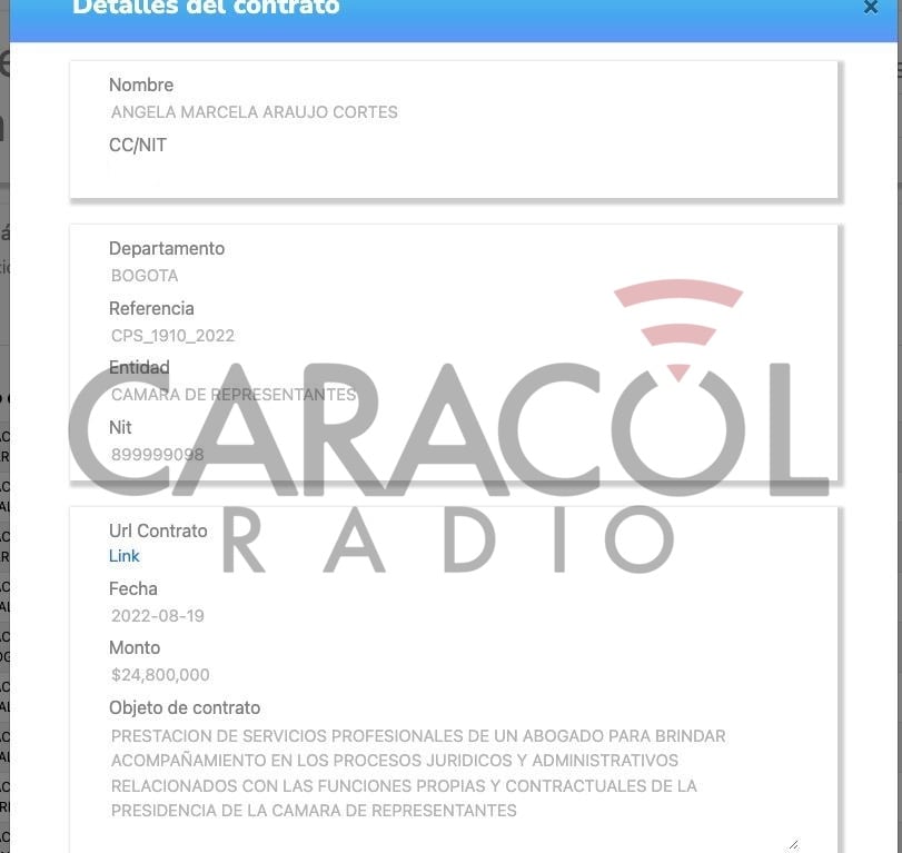 2. Daniela del Carmen Parada Quintero, pareja sentimental del anterior, ha sido favorecida con nueve contratos con la Unidad Nacional de Protección, UNP, y la Superintendencia de Economía Solidaria.
