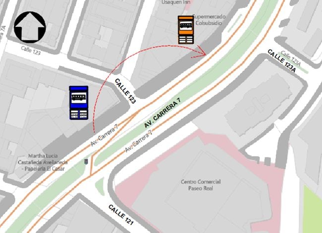 El paradero número 173A01 ubicado en el andén occidental entre la calle 123 y calle 121, será trasladado 100 metros al norte de su ubicación actual