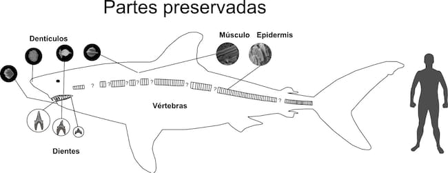 Finalmente, se determinó que el tiburón perteneciente al Cretácico inferior alcanzaba una longitud de 6.65 metros.