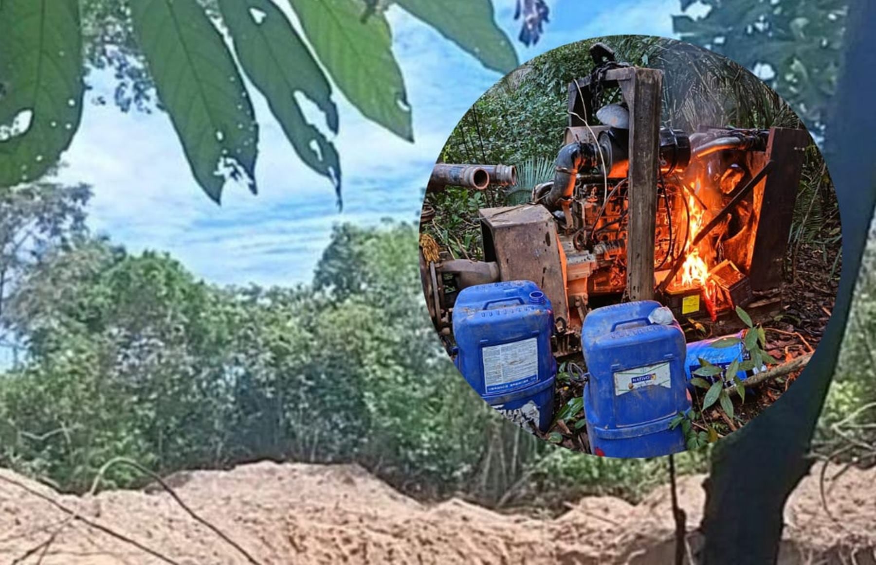 La destrucción del equipo para la explotación ilícita de yacimientos mineros se realizó por parte de las tropas de la Sexta Brigada del Ejército con previa coordinación con la Policía Nacional.