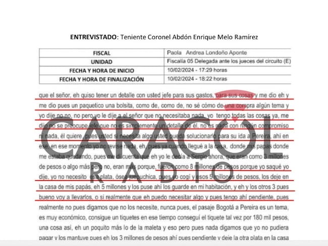 Entre los soportes aparece la declaración de Melo ante la Fiscalía en la que reconocer haber recibido dinero que sería de Diego Marín Buitrago.