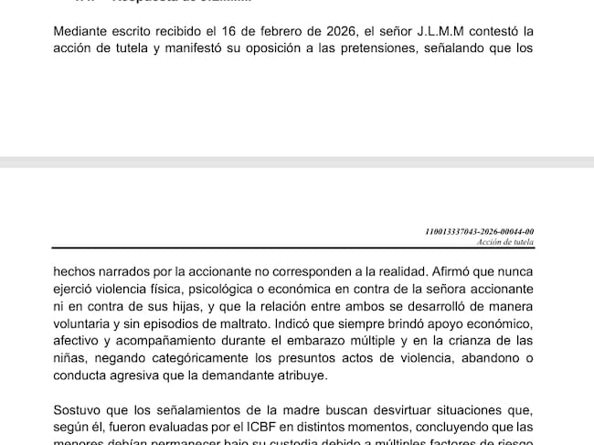 El padre de las niñas, en respuesta judicial, ha negado haber ejercido violencia física, psicológica o económica y sostiene que la relación fue voluntaria y que siempre brindó apoyo a sus hijas. Esa versión hace parte del expediente y deberá ser valorada dentro de los procesos en curso.