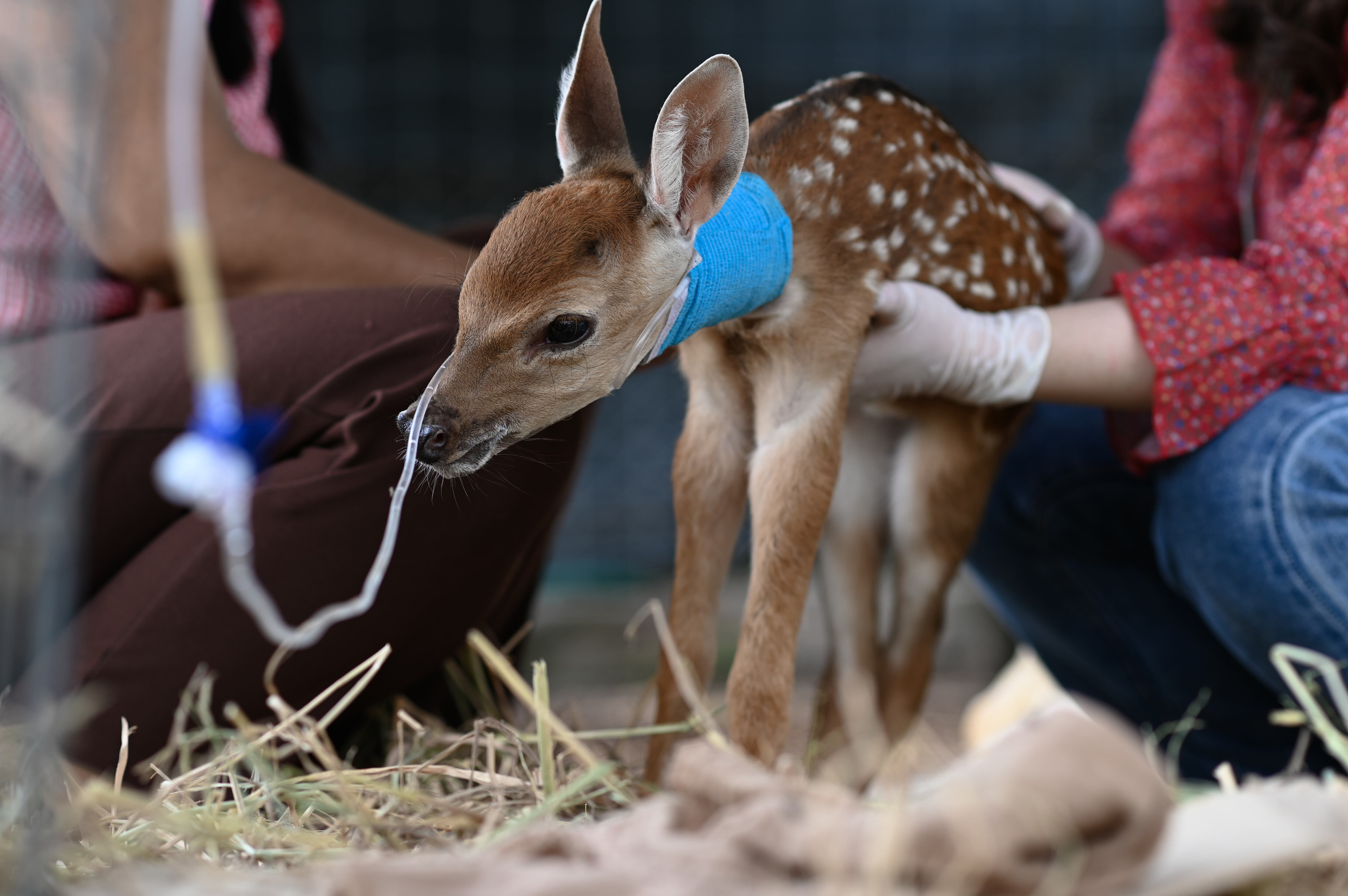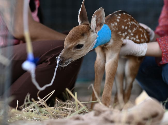 Según el reporte veterinario, el pequeño venado se encuentra en buen estado de salud y bajo monitoreo permanente.