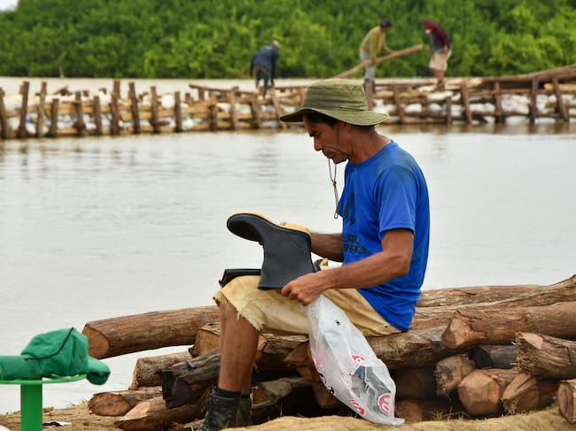 Mientras, en Sarandelo, zona rural de Lorica, Córdoba, se entregaron más de 150 pares de botas a campesinos que trabajan junto con entidades del Sistema Nacional de Gestión del Riesgo en la construcción de un jarillón para contener las aguas del río Sinú.