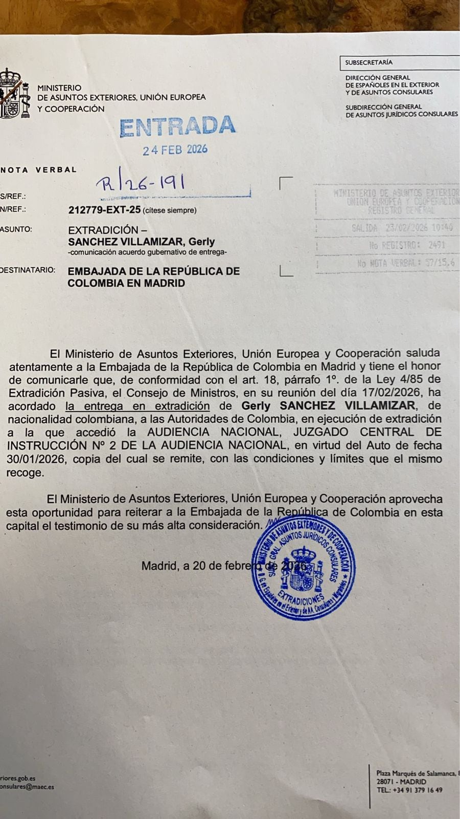 El ‘Mono Gerley’ fue capturado por las autoridades españolas en diciembre de 2025, tras confirmar que era solicitado por lavado de dinero y financiación al terrorismo.