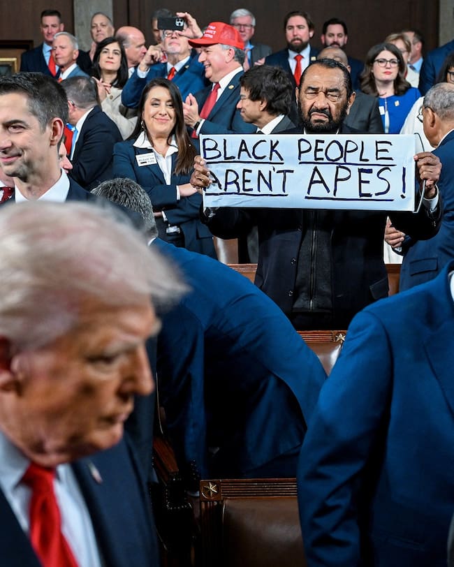 A su vez, el legislador demócrata Al Green fue expulsado del discurso después de levantar un cartel que decía “Las personas negras no son simios”, en referencia a un video racista de Barack y Michelle Obama publicado en las redes sociales del mandatario estadounidense.
