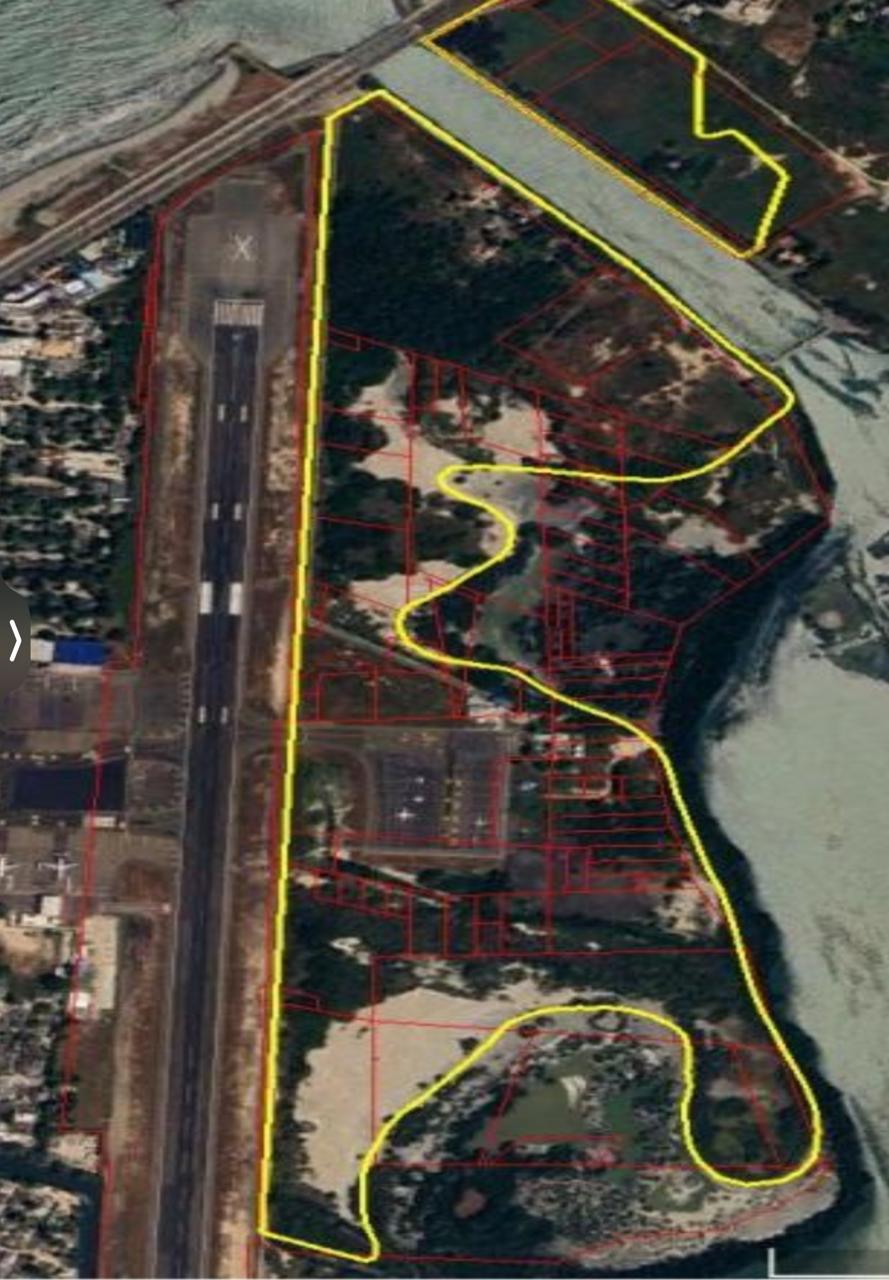 El predio encerrado en amarillo, La Bocana, fue devuelto a Aeronáutica Civil. Allí estaba en construcción Ciénaga del Mar. Crédito: Cortesía.