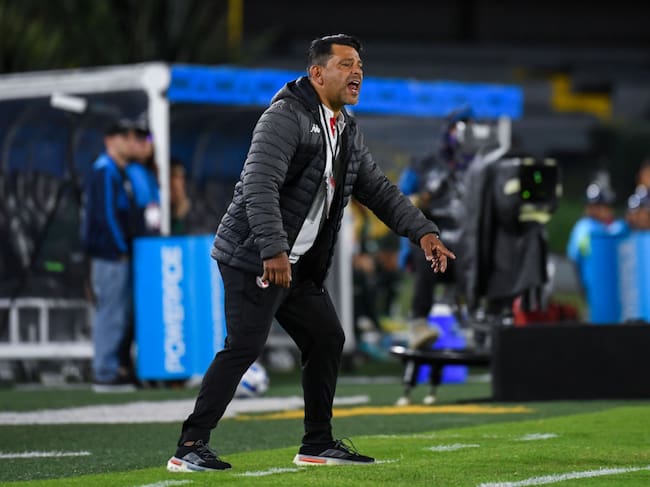 BOGOTA, COLOMBIA - JUNE 28: Santa Fe Coach Gerardo Bedoya reacts during the Copa CONMEBOL Sudamericana 2023 group G match between Independiente Santa Fe and Goias at El Campin stadium on June 28, 2023 in Bogota, Colombia. (Photo by Daniel Munoz/VIEWpress/Getty Images)