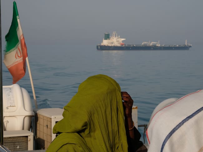 En portada, mujeres Iraníes viendo un buque comercial pasando por el estrecho de Ormuz. (Photo by Kaveh Kazemi/Getty Images) / Kaveh Kazemi
