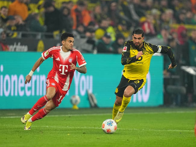 Luis Díaz enfrentando al Borussia Dortmund con el Bayer Múnich por la Bundesliga. (Photo by Ulrik Pedersen/NurPhoto via Getty Images) / NurPhoto